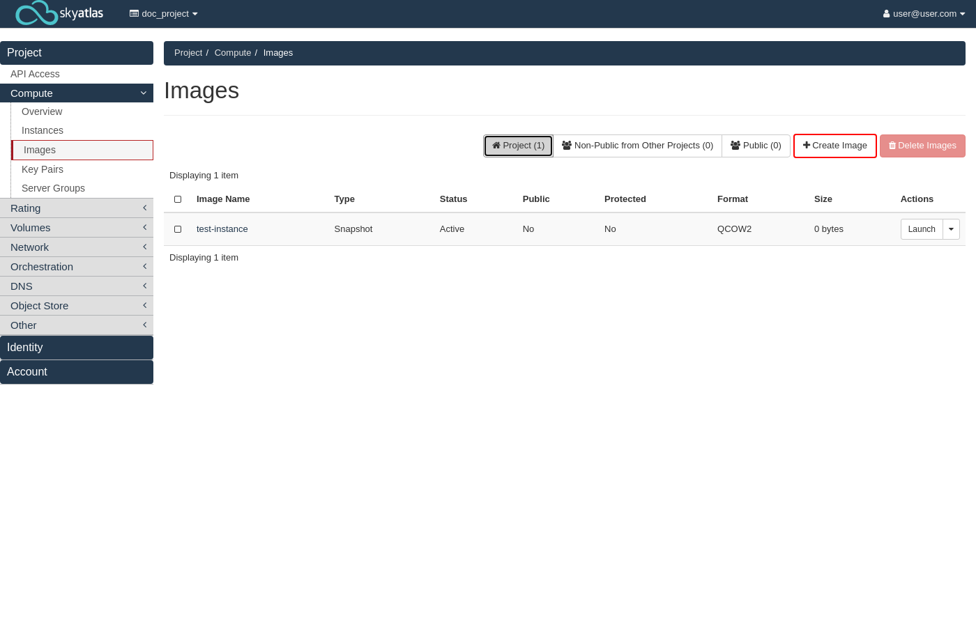 Dashboard'daki Compute > Images bölümüne gidin.